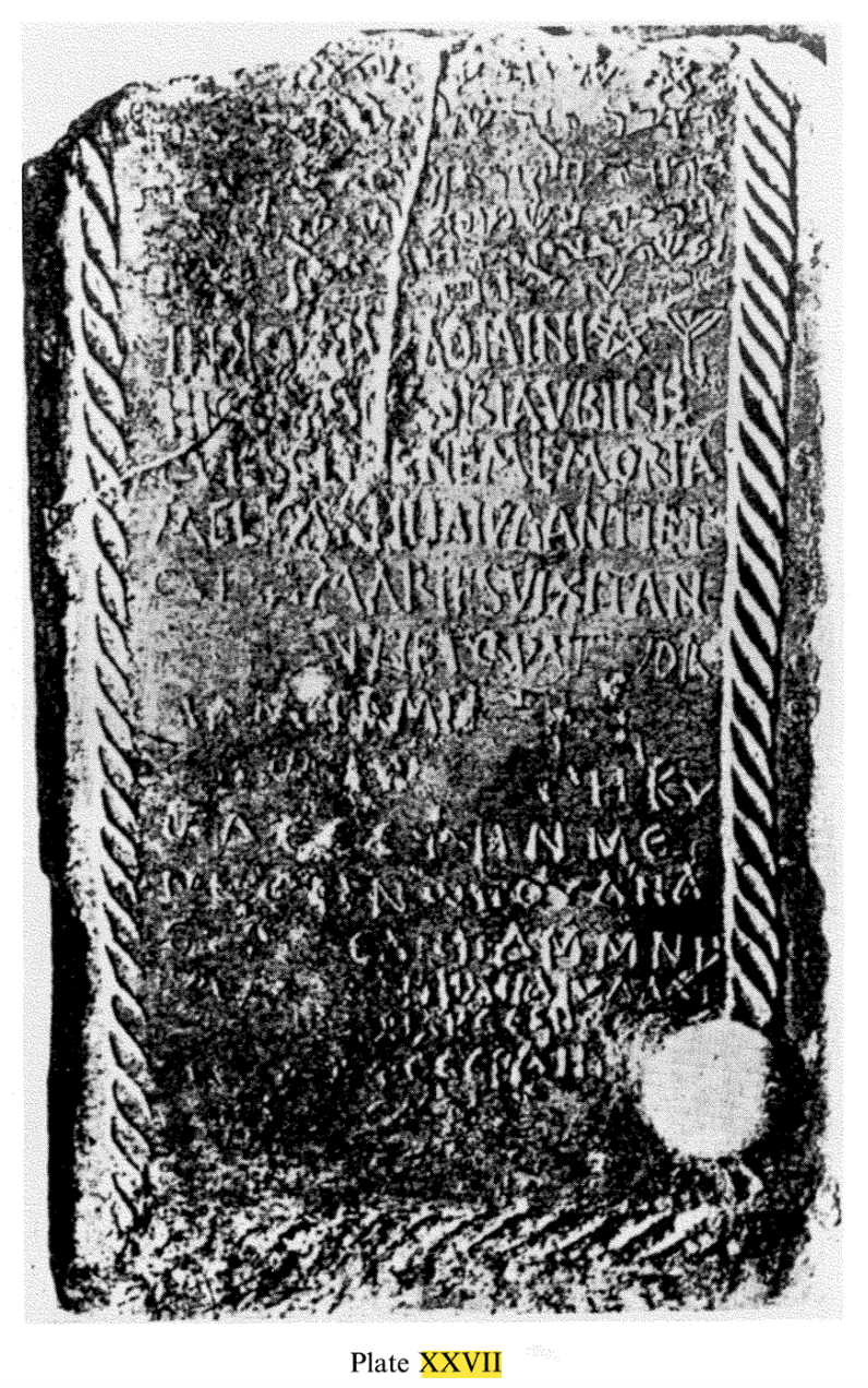 This trilingual inscription, unlike the bilingual inscription we have just looked at, has a similar text in all three languages, with the greatest similarities between the Latin and Greek texts. It introduces the resting place of the individual, and her both parents. The Latin and Greek proclaim the text “in the name of the Lord”; refer to her “memorial”; use similar epithets for “well-remembered”; and both state her age, ending “in/with peace”, and “amen”. The Hebrew text, however, wishes “peace upon Israel”, refers to her “tomb/memorial”, using the common Talmudic term for “grave” (Noy, JIWE I, 251; Jastrow 1903) and her father as “Rabbi”, and most significantly, contains the portion of Prov 10:7 that we have encountered in other inscriptions. The wishes for the deceased’s eternal life and resting of the soul are also unique the Hebrew part of this text. Noy has argued that “Tortosa became a centre of Jewish learning in the 10th and 11th centuries, when it was the home of the poet, grammarian and lexicographer Menahem b. Jacob ibn Saruq and the physician and geographer Ibrahim b. Yaqub” (Noy JIWE I, 253; Beinart 1971). Although this inscription is almost certainly earlier than these two individuals, there is extensive debate about the dating of almost all Jewish inscriptions. As all examples we have encountered in this chapter show, pre-modern Jewish inscriptions tend to state the deceased’s age, but not the date of death, unlike Christian inscriptions, which often use a combination of age and date of death.