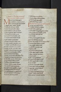 Abb. 1: Horaz, Carmina I,1 in (von links nach rechts): München, Bayerische Staatsbibliothek, Clm 17320, Bl. 1 (ungebunden); Leipzig, Universitätsbibliothek, Rep. I 4, f. 46r; Rom, Vatikan, Biblioteca Apostolica Vaticana, Vat. lat. 1654, f. 152r.