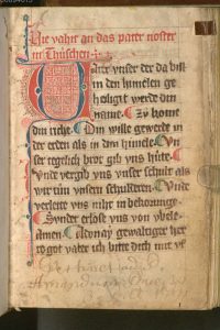 Abb. 3: Vaterunser in gotischer Minuskel in München, Bayerische Staatsbibliothek, Cgm 163, f. 1r.